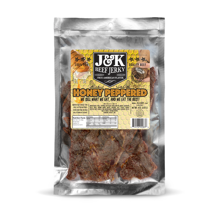 Indulge in the perfect balance of sweet heat with our Honey Peppered jerky—crafted from 100% USDA premium beef and marinated to perfection. Each bite delivers a rich honey glaze followed by a bold black pepper kick, creating a flavor that’s both smooth and fiery.