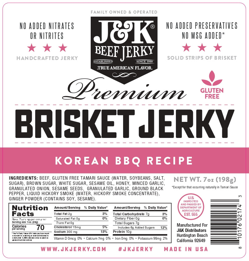 Indulge in the rich, savory flavors of our gluten-free Korean BBQ jerky, made with soft and tender 100% USDA premium brisket.