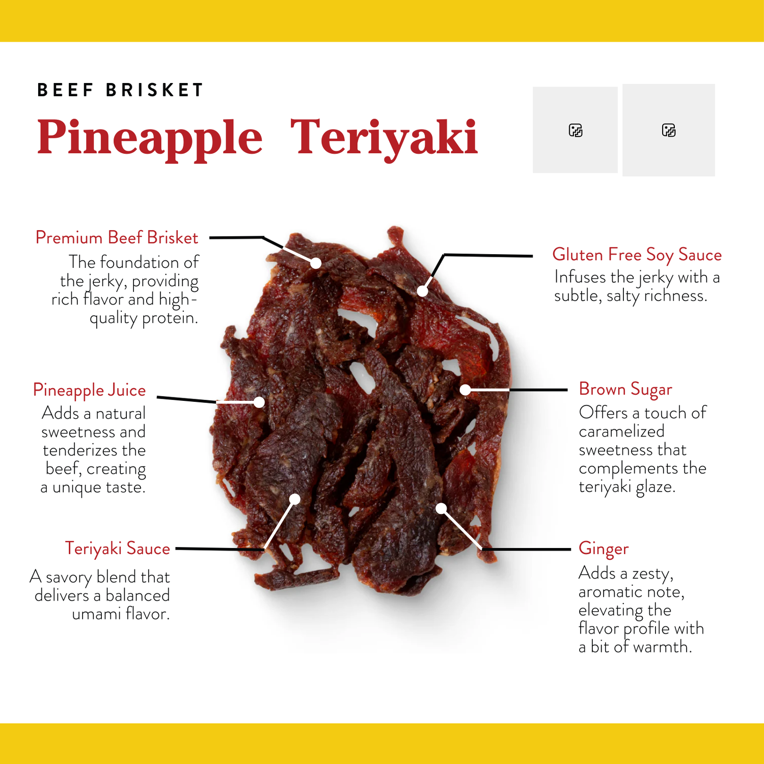 Delight in the tropical sweetness of our gluten-free Pineapple Teriyaki jerky, made with soft and tender 100% USDA premium brisket.
